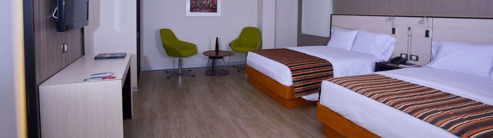 Amenities : Aire acondicionado - TV LCD de 32” con cable - Conexión Internet Wi Fi - Teléfono - Caja de Seguridad Digital - Escritorio y sillas de estilo lineal - Nevera/Minibar - Secadora de pelo - Amplio Baño con tina y agua caliente