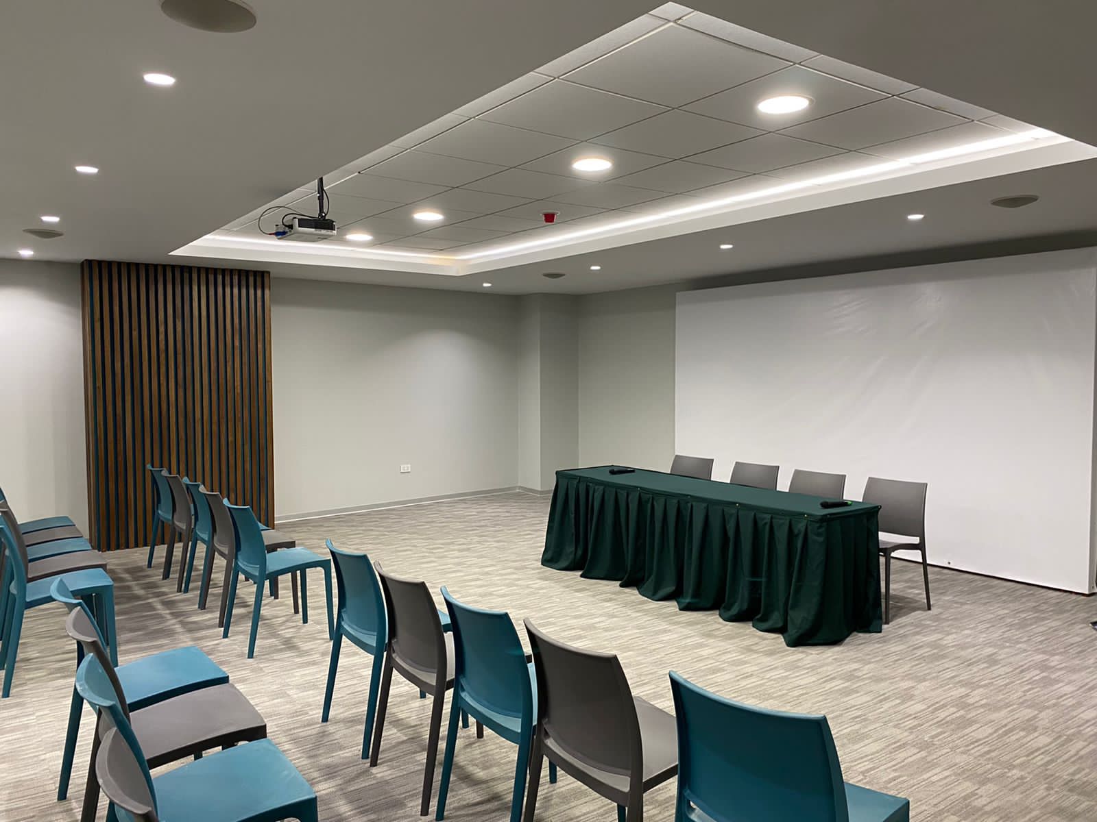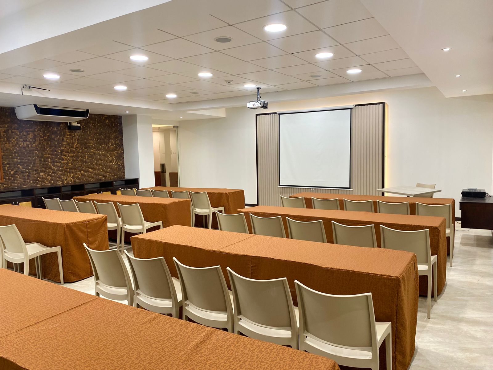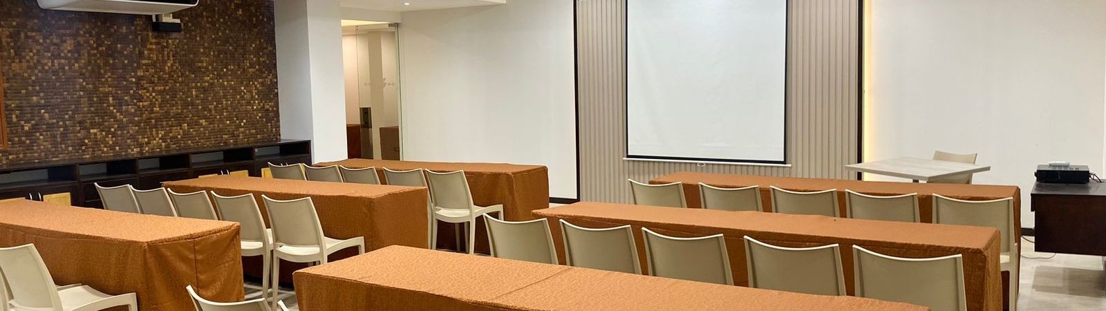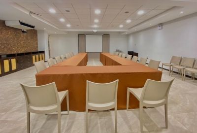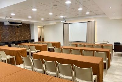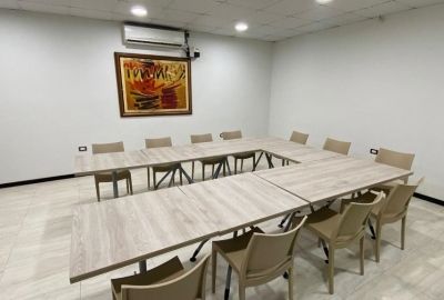 Nuestra sala de reuniones principal tiene capacidad para 120 personas en formato de conferencia. Está equipado con aire acondicionado y audiovisuales. Esta sala de reuniones cuenta con un espacio especial para recepción y coffebreaks.
